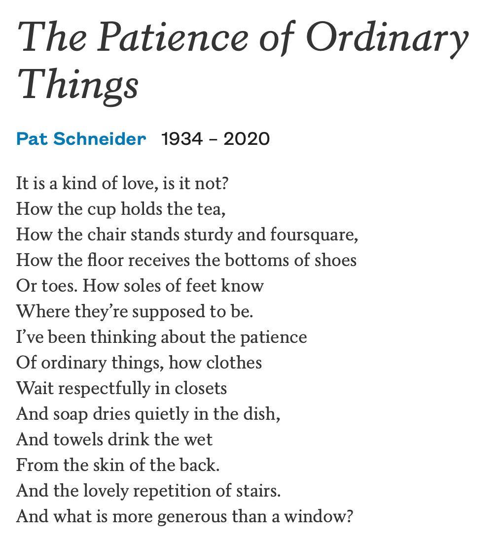 “The Patience of Ordinary Things” by Pat Schneider